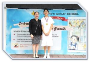 S3 Sarah Cha was awarded a Gold Award in appreciation of performing good deeds consecutively for three months in the Jockey Club Volunteer Together Program.