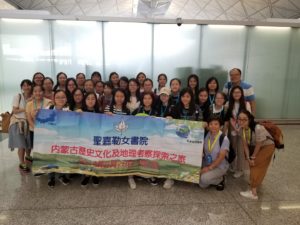 30位中四、中五同學於2019年6月28日至7月3日參加由本校中史科和地理科合辦之「內蒙古歷史文化及地理考察探索之旅」,行程的主要景點包括呼和浩特、鄂爾多斯、成吉思汗陵墓、內蒙古教堂、達拉特旗蘇泊罕大草原 (入住蒙古包) 、庫布其響沙灣、大召寺、呼和浩特清真寺、綏遠城將軍衙署、昭君墓及伊利企業。師生均十分享受是次遊學,能夠充分領略內蒙的風土人情。