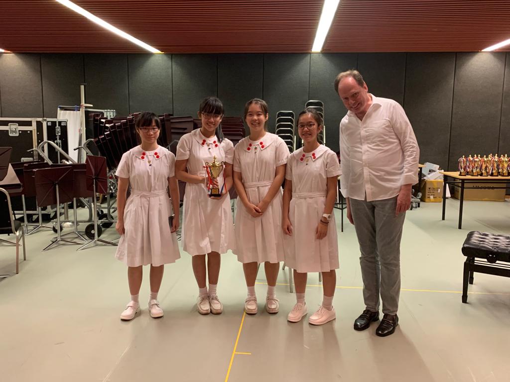 On 1 September 2019, in the Hong Kong Youth Catania Music Competition 2019 organised by the New Hong Kong Philharmonia, our school string quartet, 2M Annie Deng (First Violin), 5M Chloe Chong (Second Violin), 3J Francesca Fong (Viola) and 2M Angelina Yeung (Cello), was awarded the Champion in the string ensemble class. Congratulations!