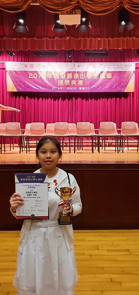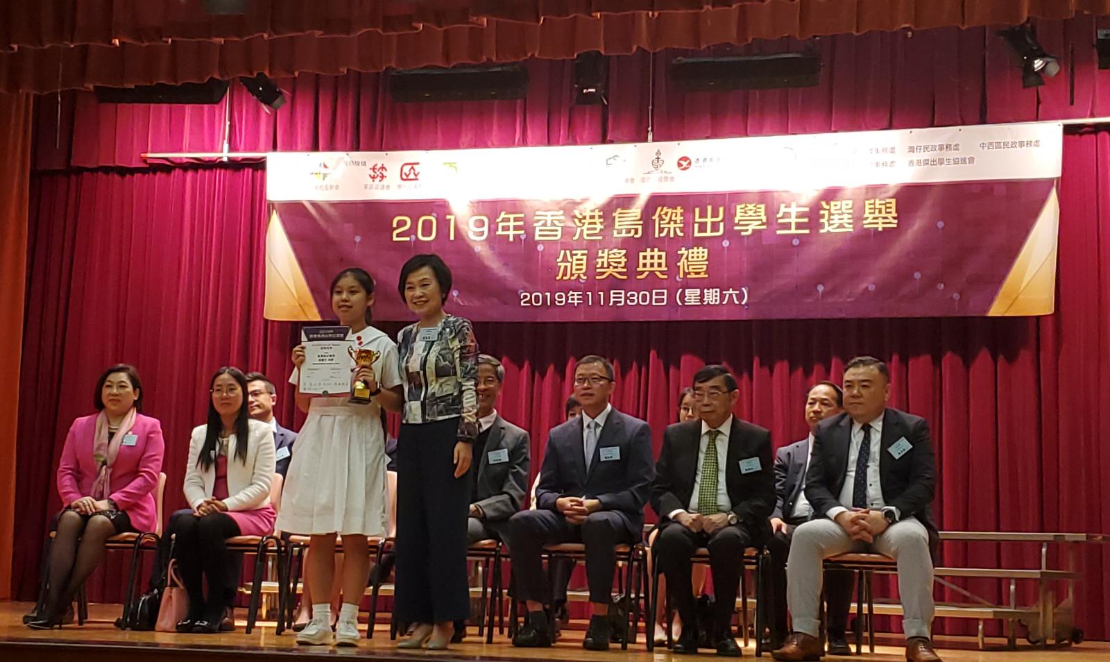 S3 Kwok Hin Man Kristy was awarded Hong Kong Island Top 10 Outstanding Students Award 2019 (Junior Section). This award aims to provide recognition and appreciation to young student leaders who demonstrate leadership skills and serve the school and society with devotions and enthusiasm.