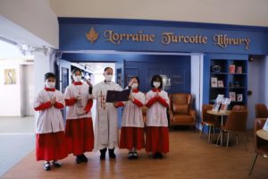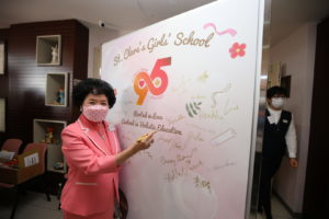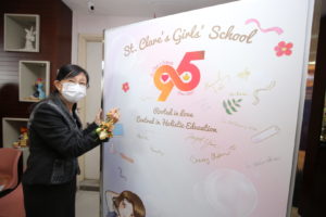 To kick off the 95th Anniversary Celebration of St Clare’s Girls’ School, the Opening Ceremony was an integral event that officially marked the commencement of festivities. Followed by the national flag raising ceremony solemnly held and the welcoming speech delivered by the school supervisor, Ms Shirley Wong, a quartet of emcees consisting of students having been nurtured as Clarians since kindergarten or primary school joyfully introduced honorary guests including Rev. Joseph Yim, who officiated at the blessing of the newly-renovated Lorraine Turcotte Library, with an aim to fostering extensive reading culture among students.
