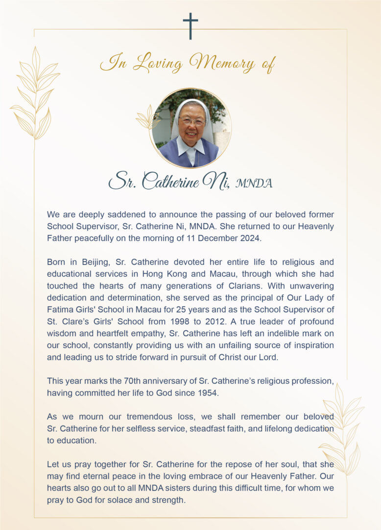 In Loving Memory of Sr. Catherine Ni, MNDA
