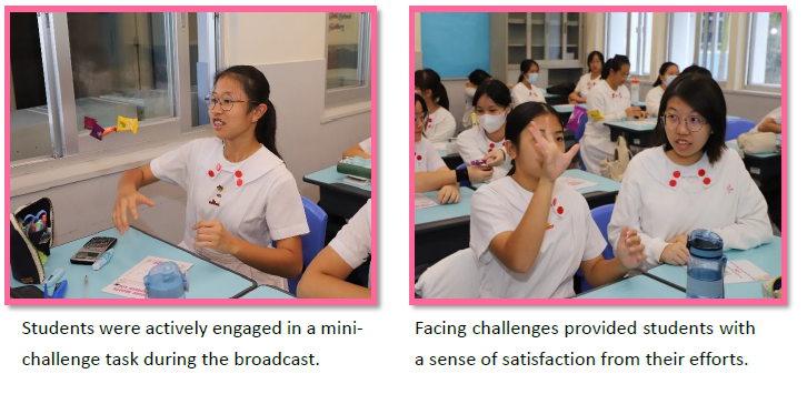During the broadcast, students took part in an engaging class challenge that gave them firsthand experience of confronting challenges and the satisfaction derived from their efforts. Students expressed their sentiments and were inspired to face future challenges with greater confidence and determination.